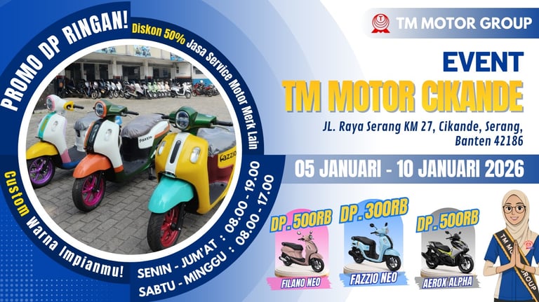 Dealer resmi Yamaha dengan 9 cabang yang tersebar di Tangerang, Bekasi dan Banten. Serta melayani 3S (Sales, Service, dan Sparepart)