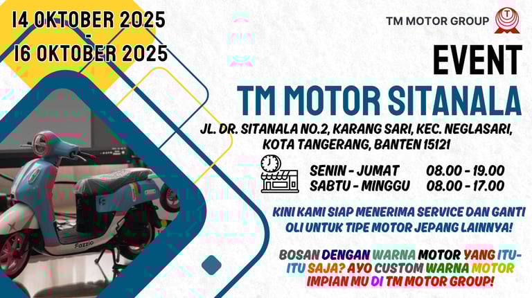 Dealer resmi Yamaha dengan 9 cabang yang tersebar di Tangerang, Bekasi dan Banten. Serta melayani 3S (Sales, Service, dan Sparepart)