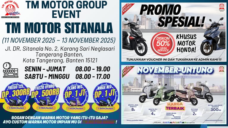 Dealer resmi Yamaha dengan 9 cabang yang tersebar di Tangerang, Bekasi dan Banten. Serta melayani 3S (Sales, Service, dan Sparepart)